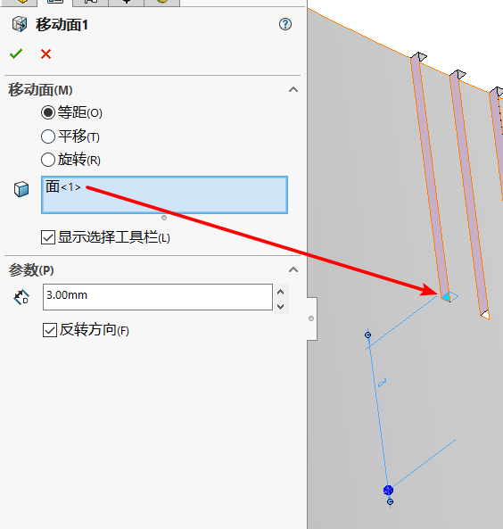 B. 采用移动面的方式延申第1条、第五条刻度分别为3mm、1.5mm