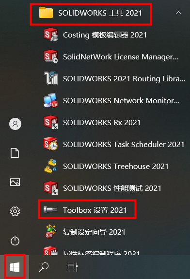 ② 顺利获得系统开始菜单选择Solidworks工具,选择Toolbox设置打开。