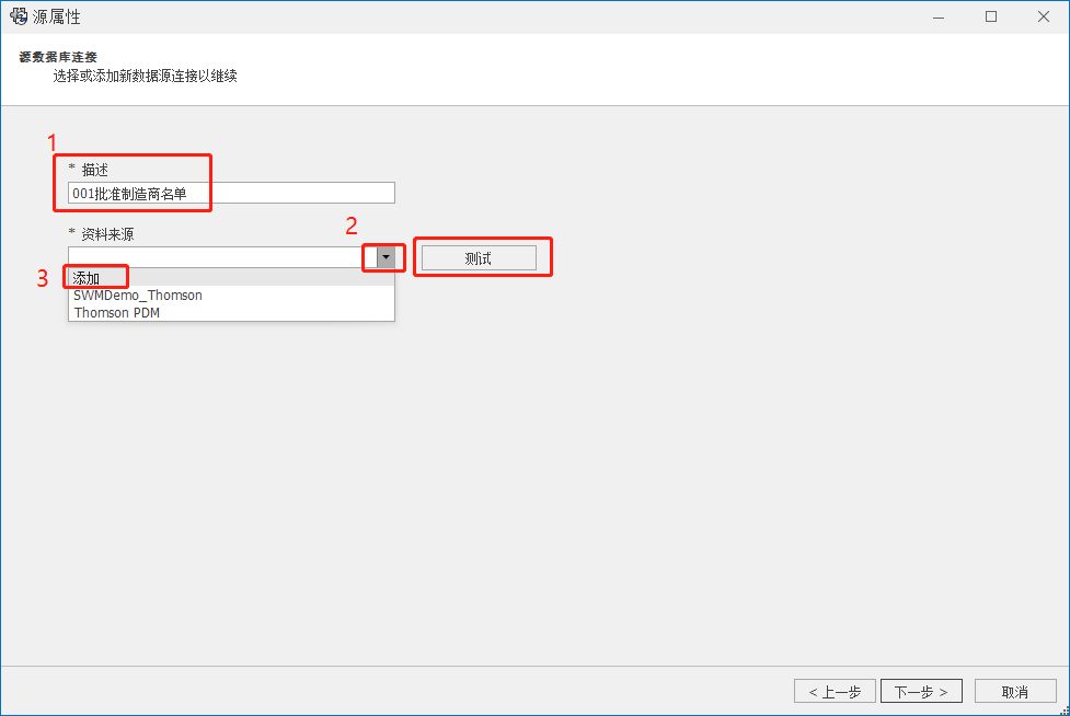 3、设置导入数据的源头——参考上图数字4所在位置,点击新建,弹出数据源头设置向导;