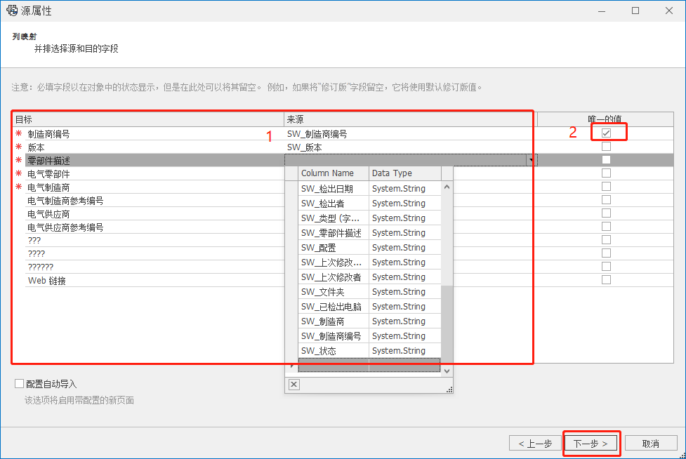 第二步, 在SWM管理选项中设置导入/导出规则,进行字段映射。