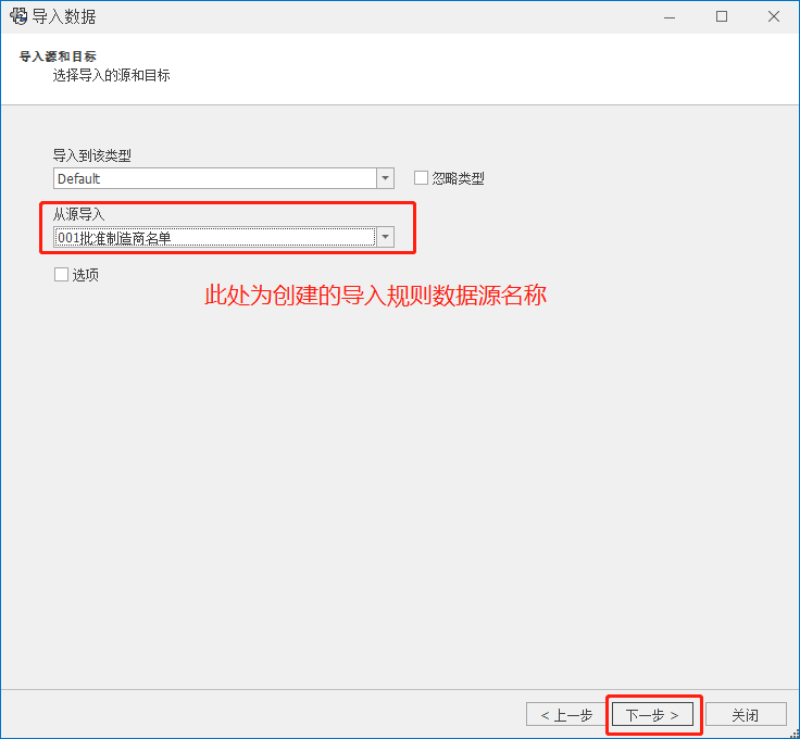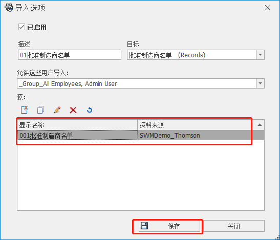 完成规则设置后,回到导入选项界面,点击“保存“按钮然后点击”关闭“。