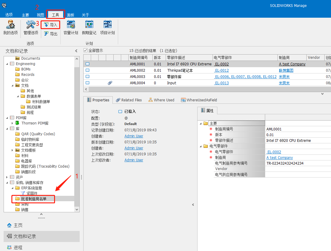 1、回到SW Manage客户端界面,浏览到所需导入的记录所在目录,在命令菜单点击“工具“——”导入“命令弹出导入向导;